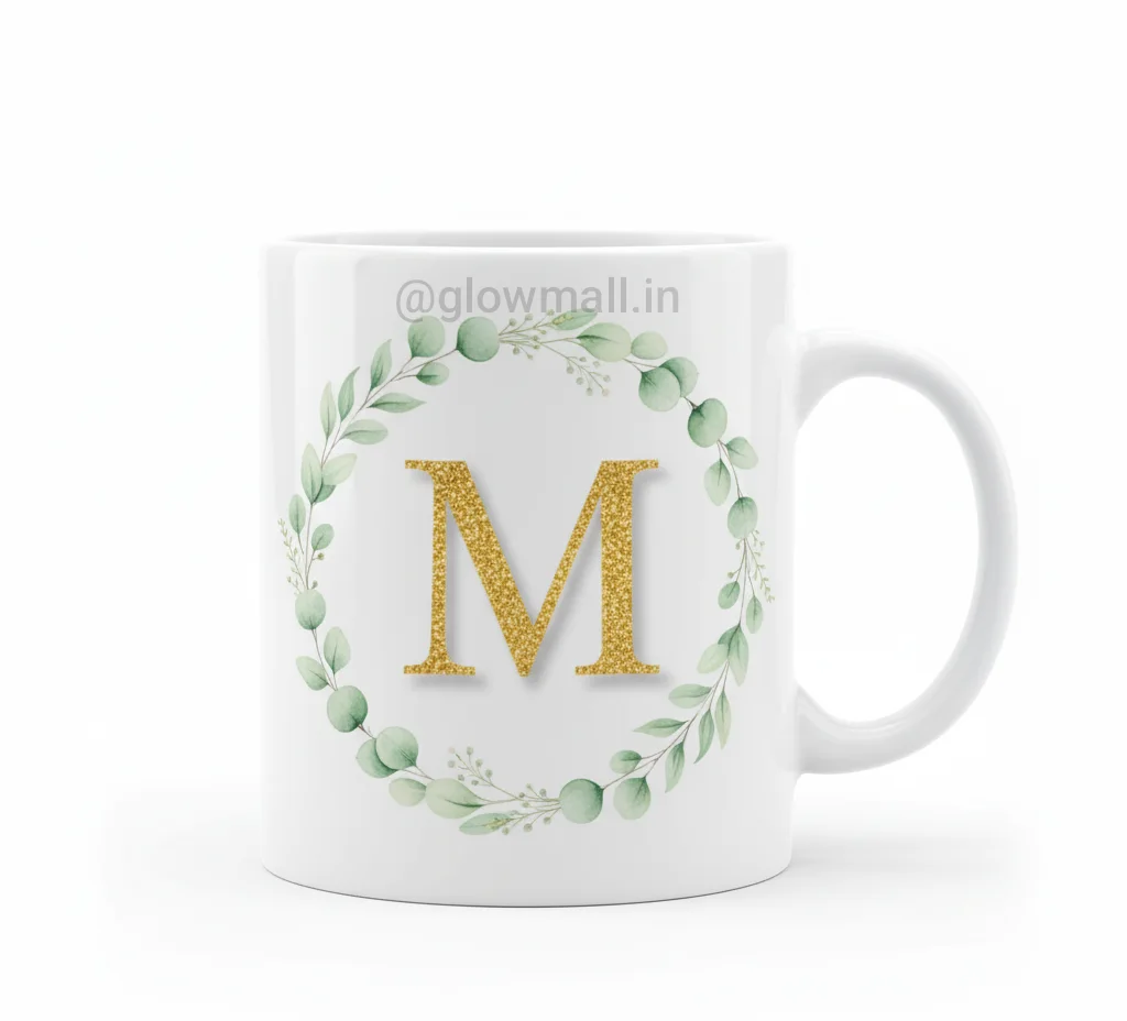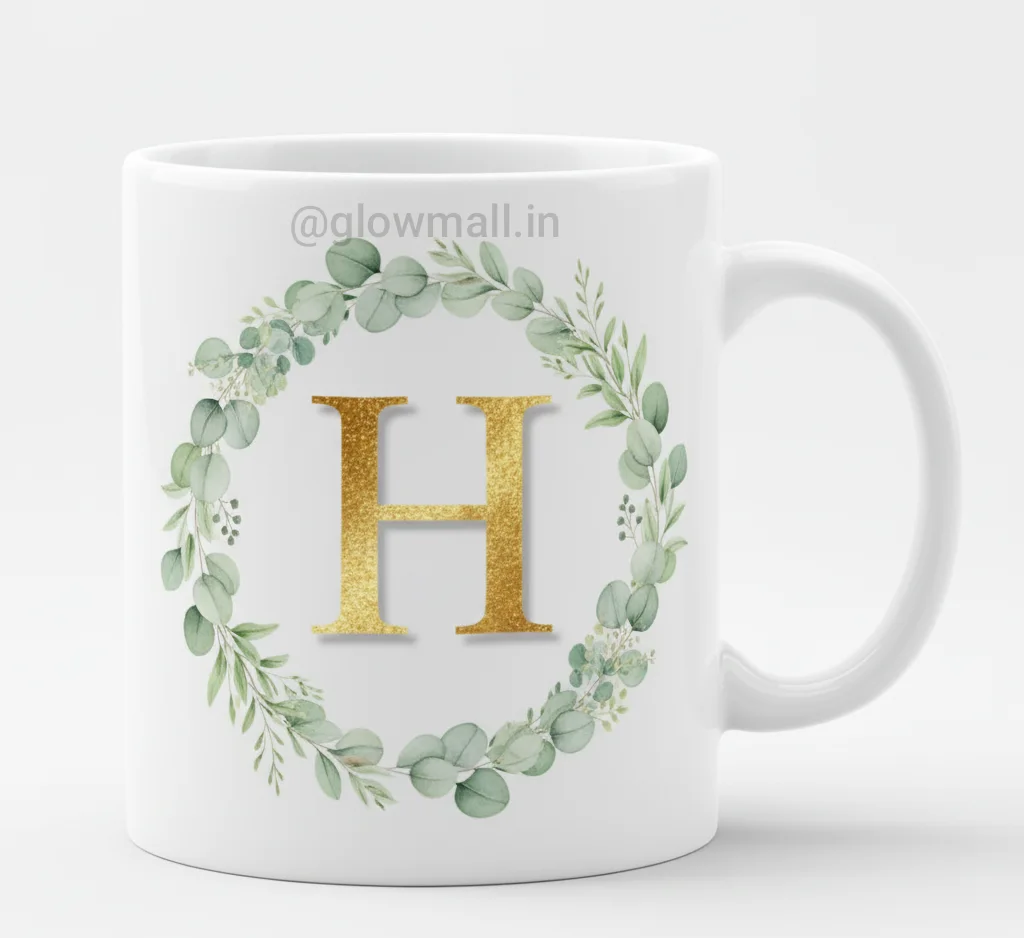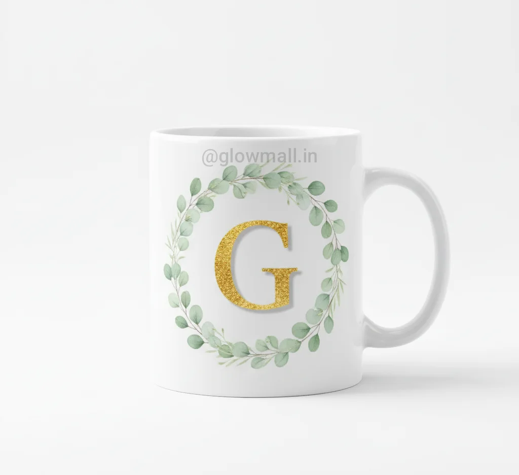Glow Mall brings you a premium Personalized Alphabet Ceramic Mug featuring a golden initial letter surrounded by elegant floral art. Perfect for gifting or daily use at home and office. Crafted from fine-quality ceramic, this mug is both stylish and durable.